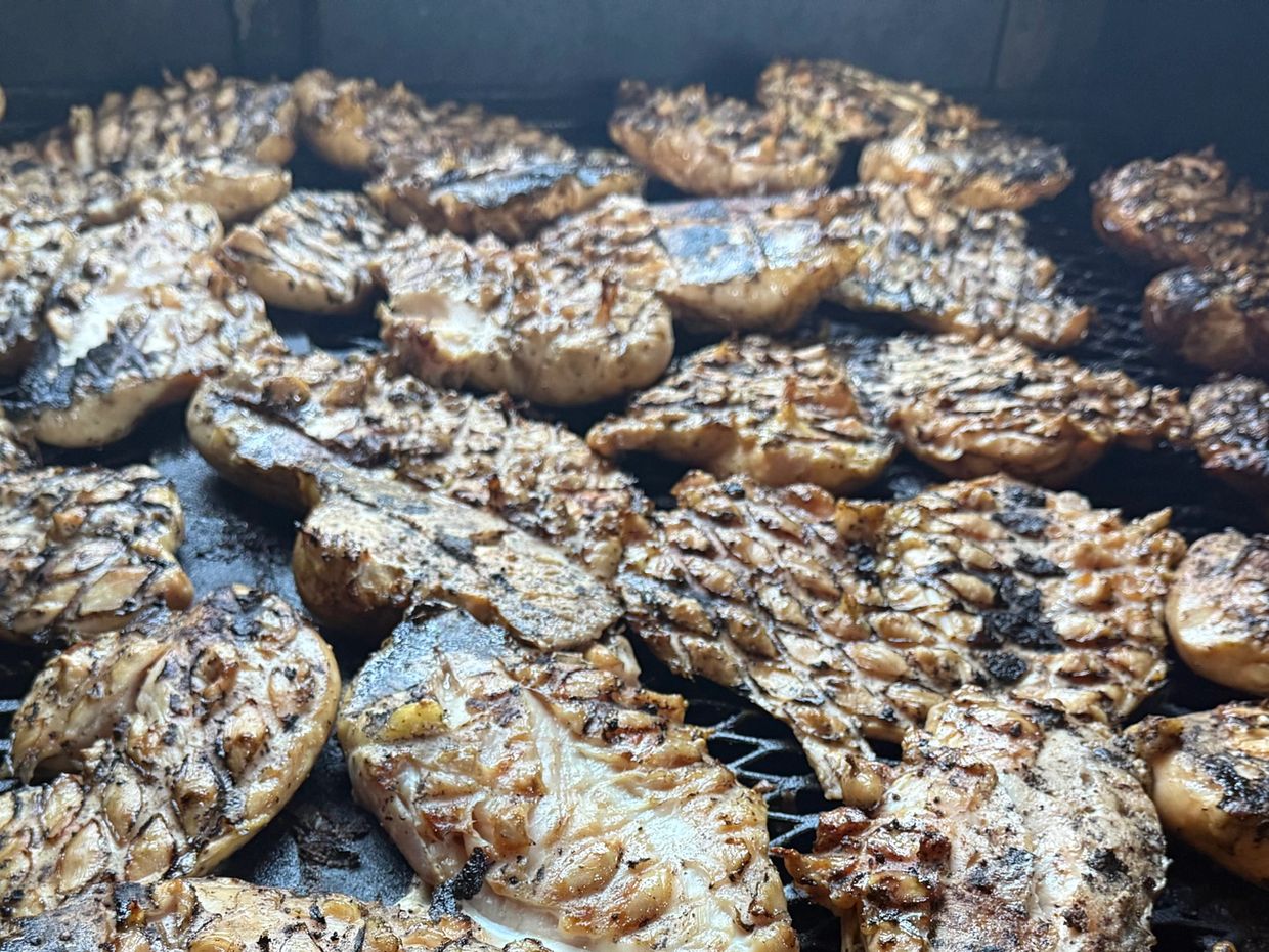 We start with All Natural Chicken from Holmes Foods in the Texas Never marinated or brined, seasoned primarily with salt and pepper, smoked 4-5 hours, and with a sweet citrus skin.